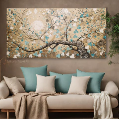 "El sakura es un árbol sagrado en la cultura japonesa, y se asocia con la belleza, la gracia y la fugacidad de la vida. Sus flores, que florecen por un corto período cada año, simbolizan la transitoriedad de la vida y nos recuerdan la importancia de apreciar cada momento. Esta obra pintada a mano captura la esencia del sakura con sus flores texturadas en tonos blancos y turquesas, y un fondo beige agrisado que evoca la serenidad y la paz. Colocar esta obra en tu hogar o lugar de trabajo no solo es una manera de apreciar la belleza de la naturaleza, sino también una forma de recordar la importancia de vivir el presente y disfrutar de cada momento. ¡No te pierdas la oportunidad de tener esta obra de arte única y significativa en tu espacio!"